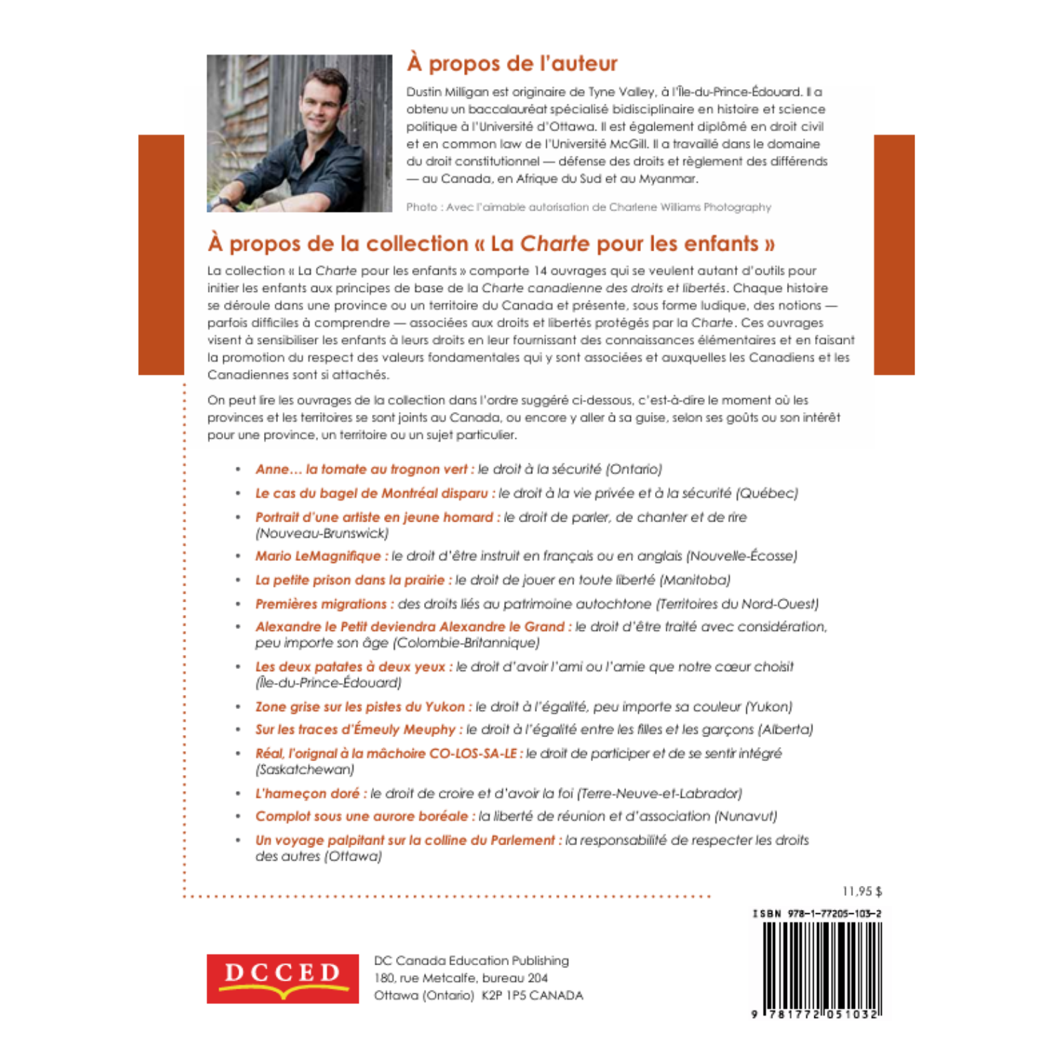 La Charte pour les enfants introduces children to the basic principles of the Canadian Charter of Rights and Freedoms. Each story is set in a different province or territory of the country and each addresses a different right or freedom in the Charter. The series seeks to empower children by providing them with a basic awareness of their rights and by fostering a respect for the fundamental values that Canadians cherish.