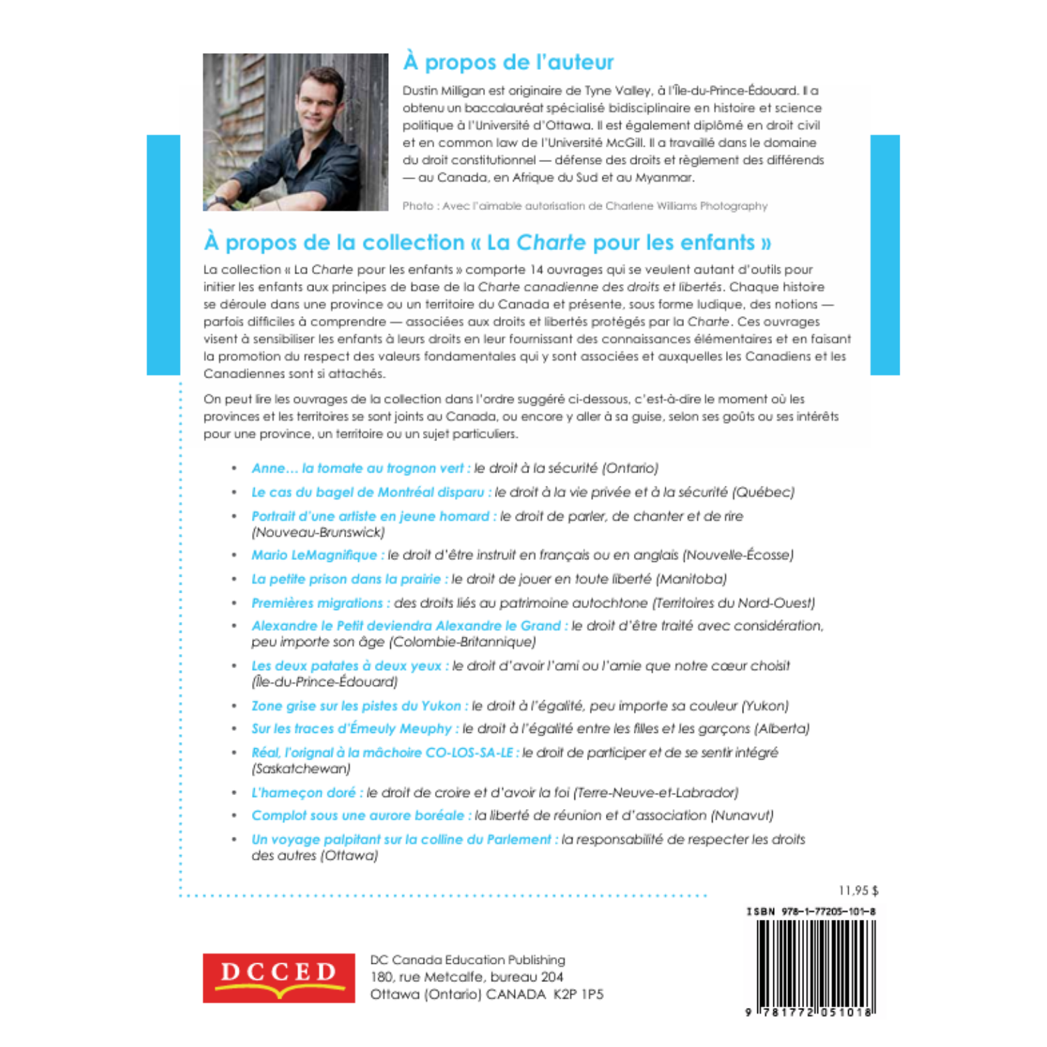 La Charte pour les enfants introduces children to the basic principles of the Canadian Charter of Rights and Freedoms. Each story is set in a different province or territory of the country and each addresses a different right or freedom in the Charter. The series seeks to empower children by providing them with a basic awareness of their rights and by fostering a respect for the fundamental values that Canadians cherish.