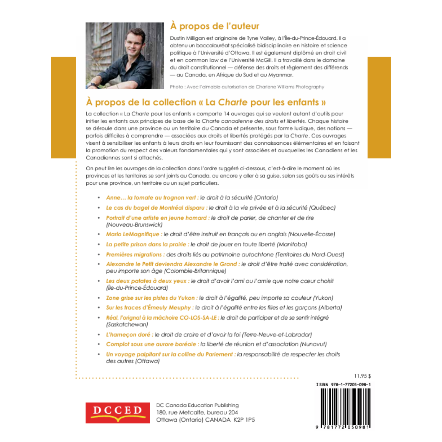 La Charte pour les enfants introduces children to the basic principles of the Canadian Charter of Rights and Freedoms. Each story is set in a different province or territory of the country and each addresses a different right or freedom in the Charter. The series seeks to empower children by providing them with a basic awareness of their rights and by fostering a respect for the fundamental values that Canadians cherish.