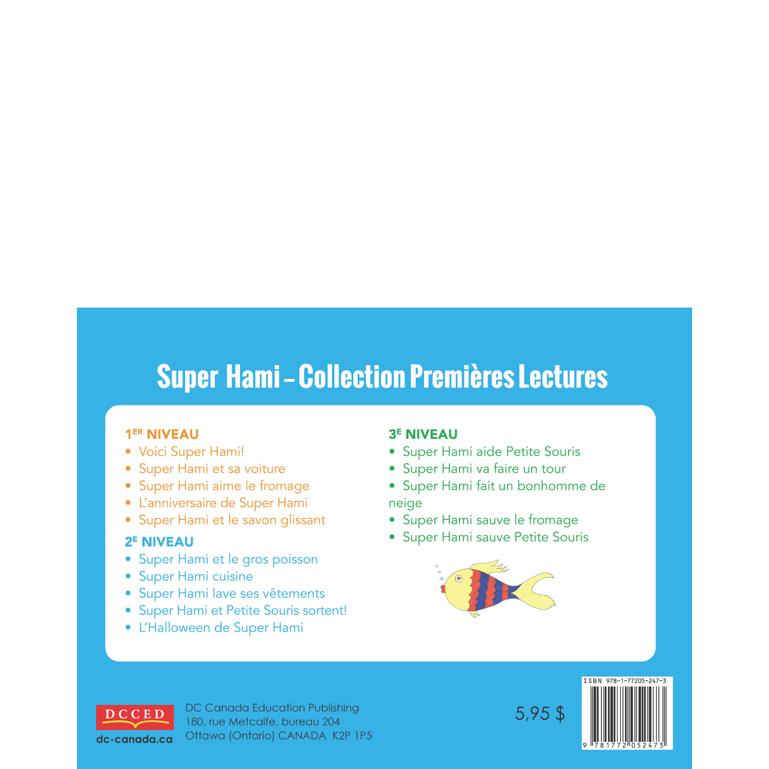 Super Hami - Ma première série de lecture is a collection of 15 books about a mighty little hero who goes on big adventures with his friend Little Mouse. The simple and funny stories are told in small sentence - just right for Pre-K, K, and Grade 1. The levelled books can be used for individual reading, guided reading, and early literacy intervention programs.