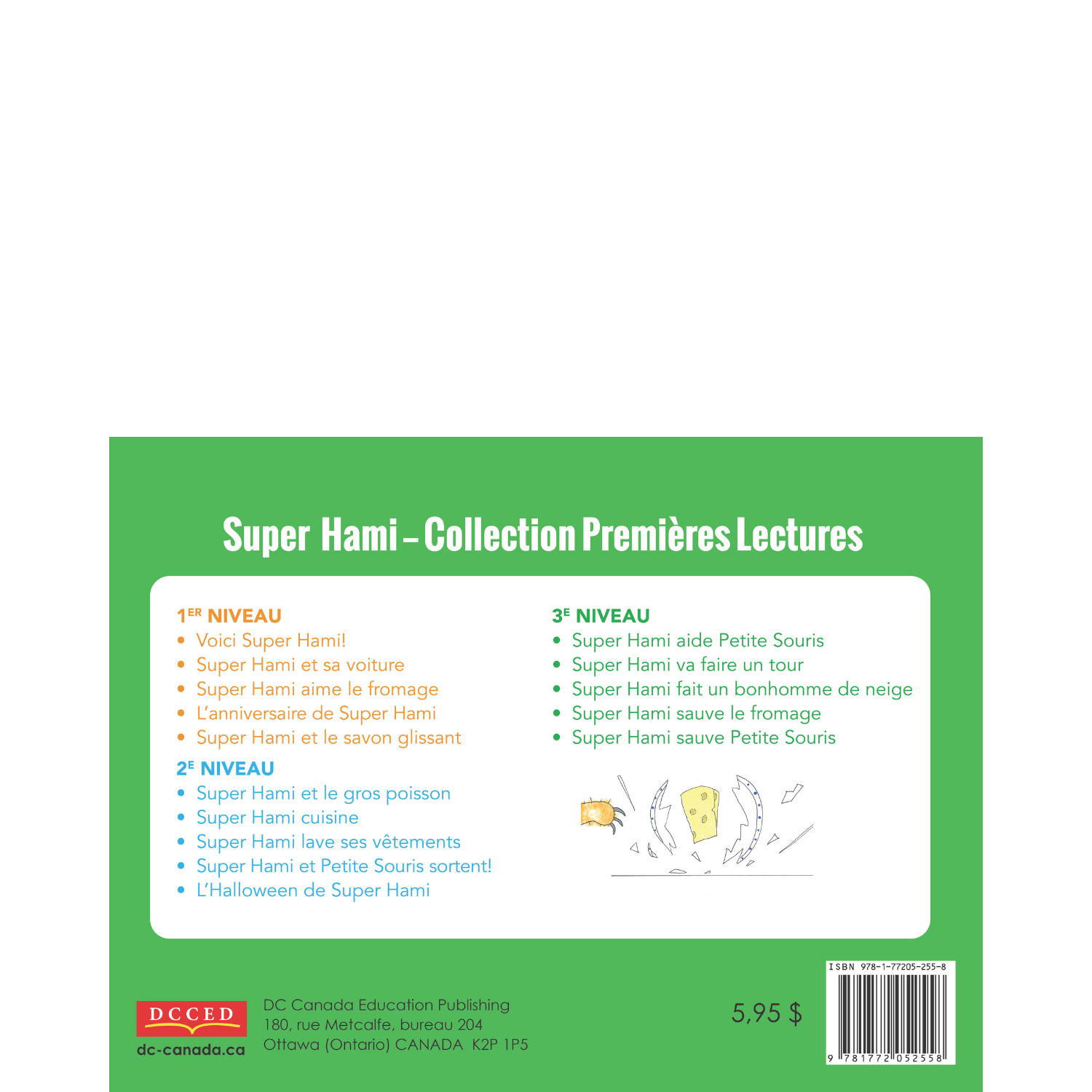 Super Hami - Ma première série de lecture is a collection of 15 books about a mighty little hero who goes on big adventures with his friend Little Mouse. The simple and funny stories are told in small sentence - just right for Pre-K, K, and Grade 1. The levelled books can be used for individual reading, guided reading, and early literacy intervention programs.