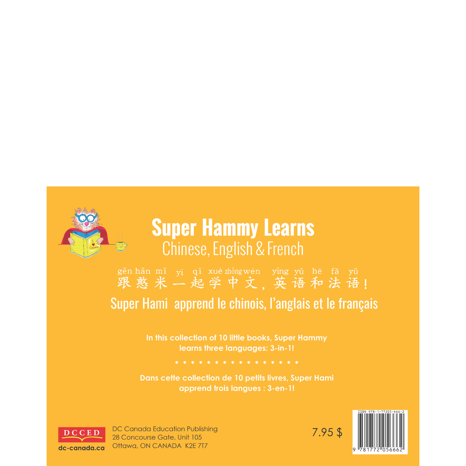 Super Hammy Learns Chinese, English, and French is a collection of 10 trilingual books about a mighty little hero who goes on big adventures with his friend Little Mouse. The simple and funny stories are told in small sentences - just right for Pre-K, K, and Grade 1 - and come in three languages, English, French, and Chinese. The Fountas and Pinnell levelled books can be used for individual reading, guided reading, and early literacy intervention programs.