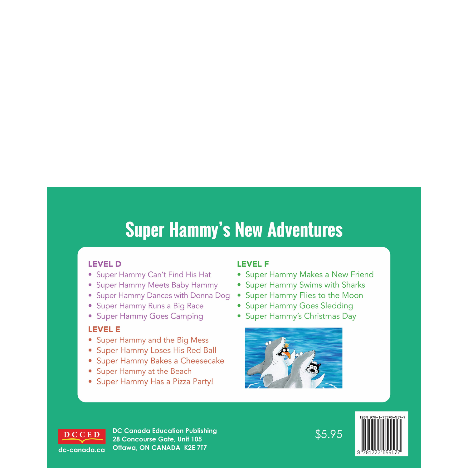 In their imaginations, Super Hammy and his friends face the danger of... sharks! This book is Fountas and Pinnell level F.
