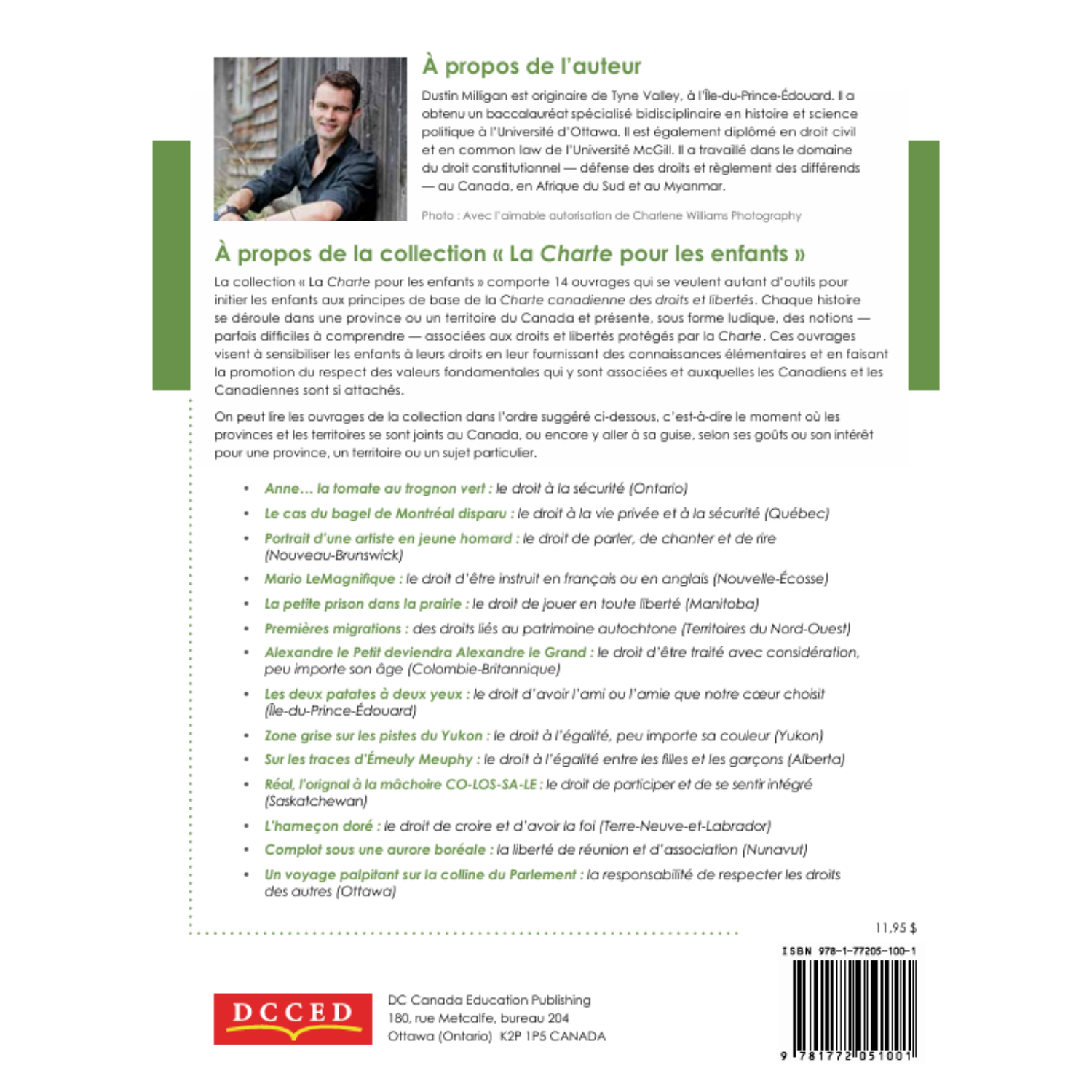 La Charte pour les enfants introduces children to the basic principles of the Canadian Charter of Rights and Freedoms. Each story is set in a different province or territory of the country and each addresses a different right or freedom in the Charter. The series seeks to empower children by providing them with a basic awareness of their rights and by fostering a respect for the fundamental values that Canadians cherish.